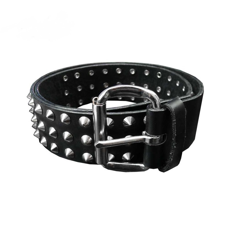 materiál: kůže, polyuretan, kov design: černý opasek s kovovými kužely stříbrné barvy rozměry: šířka 4,8 cm